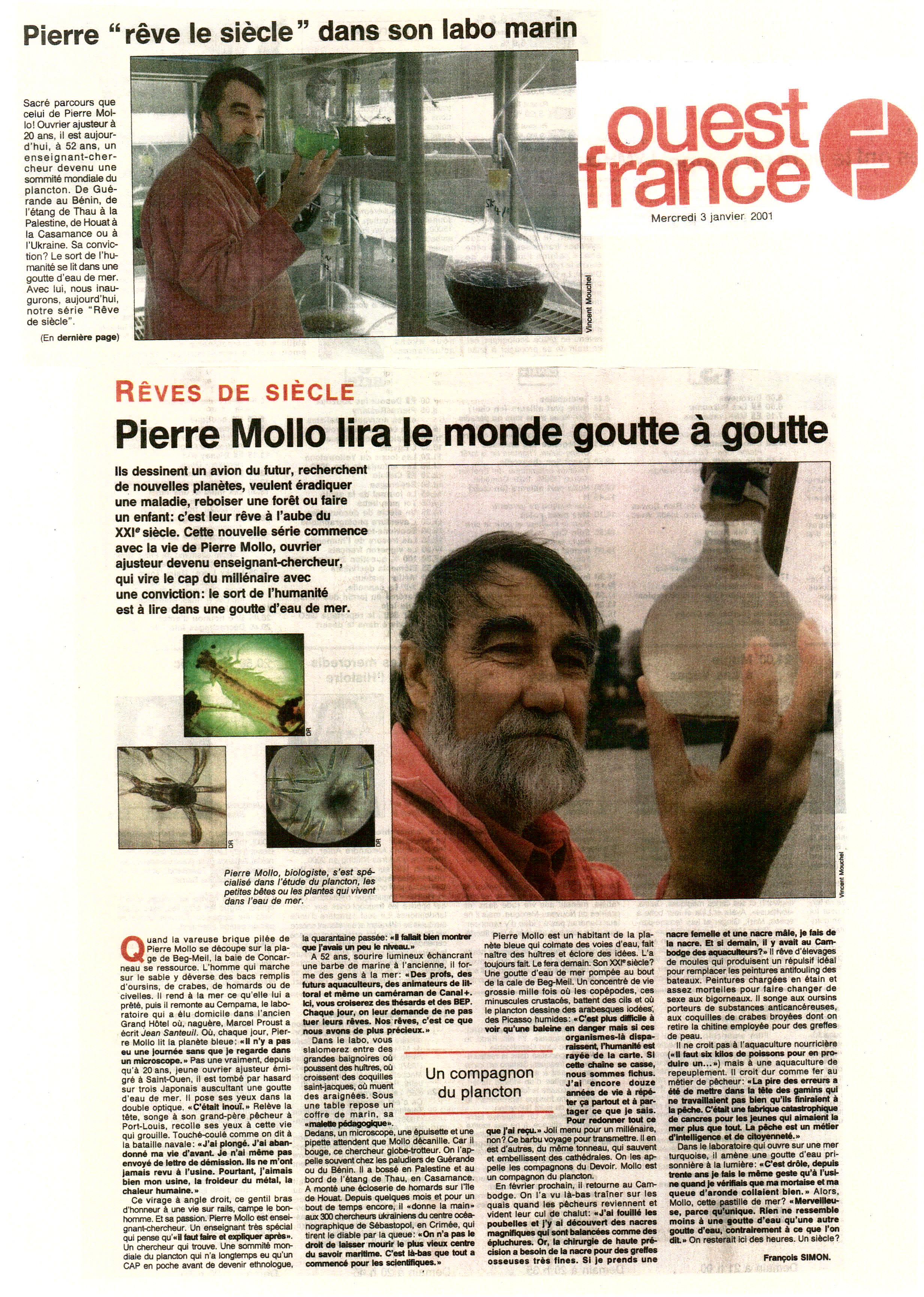 "Pierre Mollo lira le monde goutte à goutte"